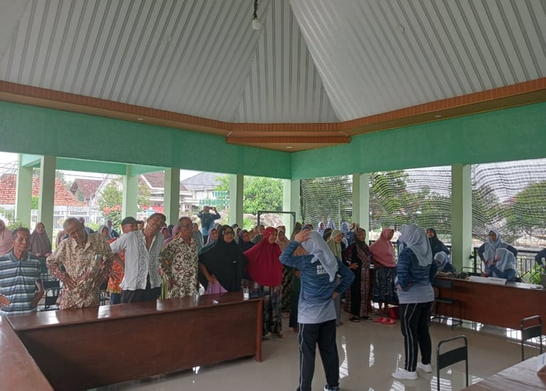 Senam bersama dalam kegiatan Posbindu Lansia